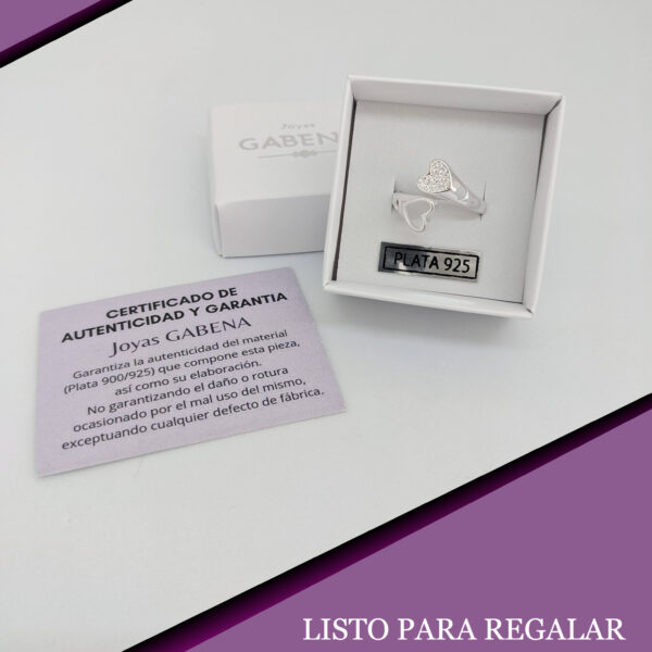 Anillo Corazón Regulable Cristales Regulable Plata 925. Abierto. Material plata 925.