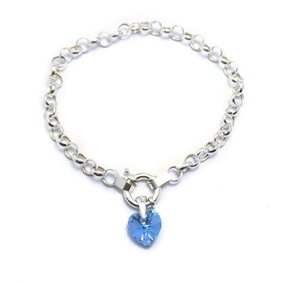 Pulsera Rolo 5mm corazon swarovski de 10mm. Confeccionados con cristales originales Swarovski Elements. Material plata 925.