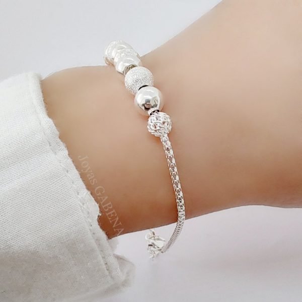 Pulsera popcorn con bolitas. Medida 19cm extensible a 21.5cm. Material plata 925.